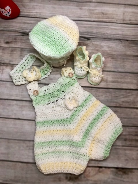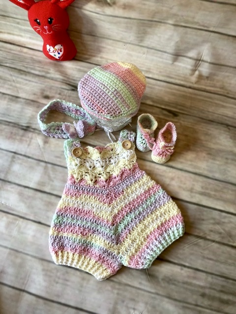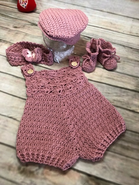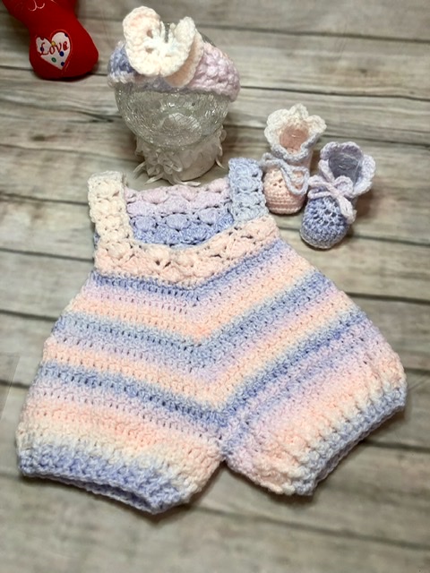 Hand Crocheted Baby Romper/Jumpsuit Set