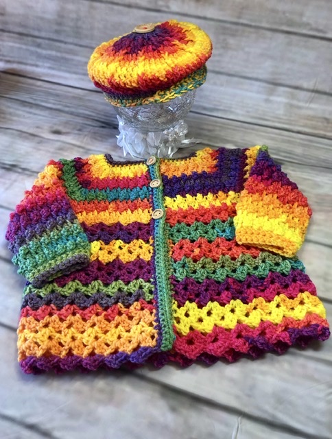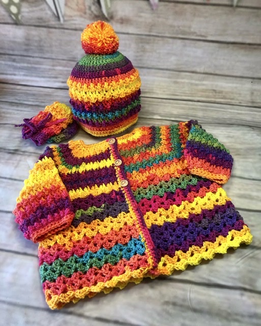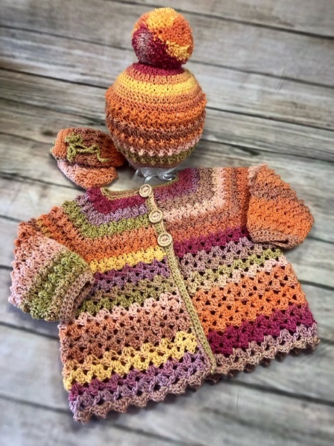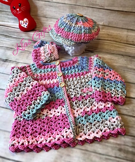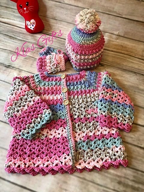 Bobble and Lace Patterned Cardigan Set.